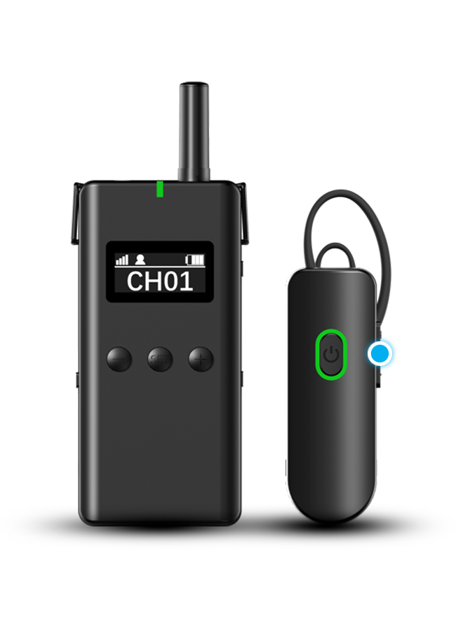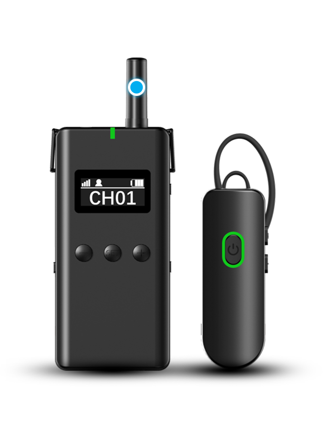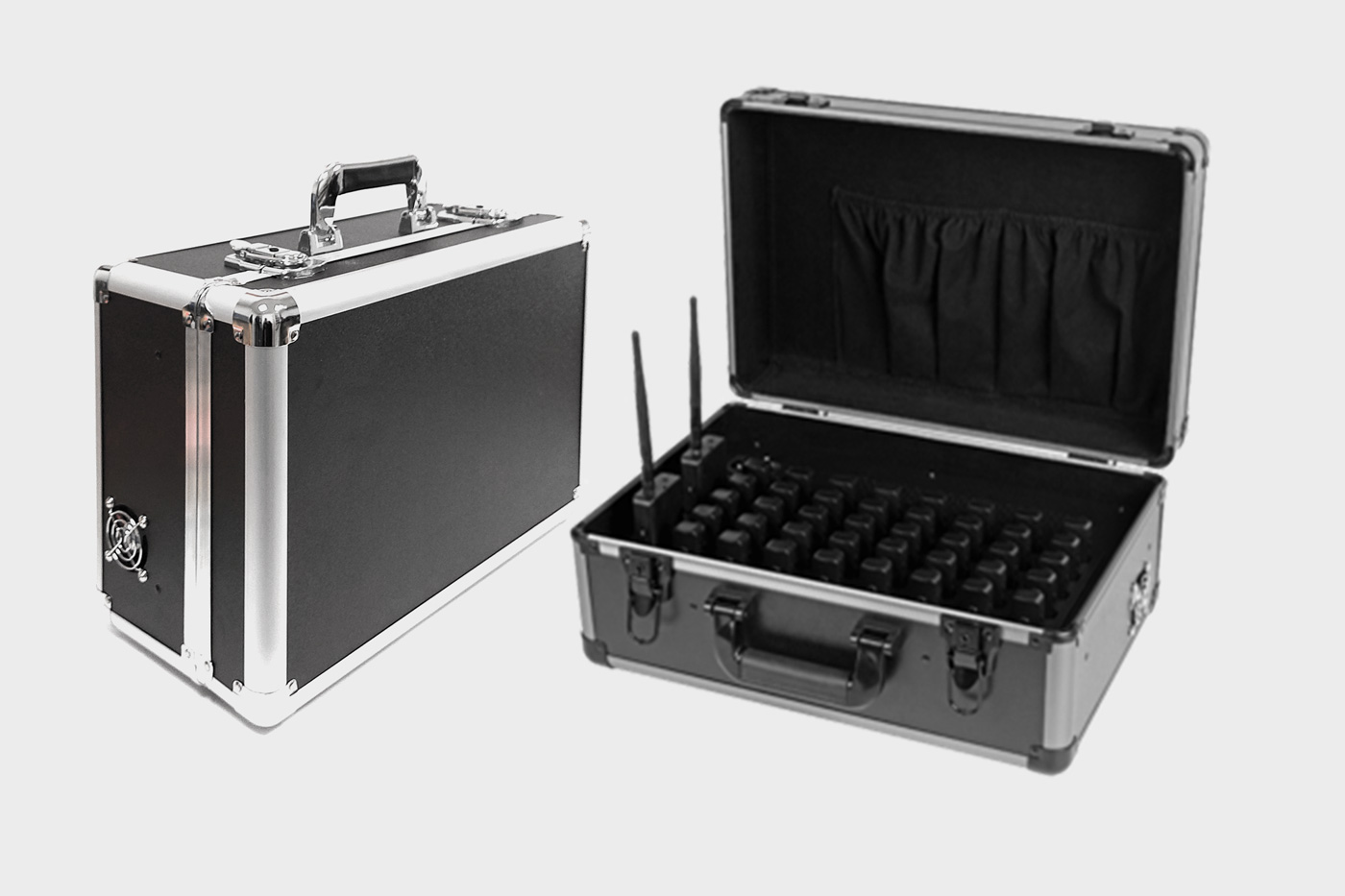 Uređaji se isporučuju sa koferom koji poseduje ležišta za automasko punjenje svih uređaja u istom trenutku. Transmiter se može upariti sa jednom ili sa svih 40 slušalica. U istom trenutku mogu raditi dva transmitera. Ovo je korisno u situacijama kada su potrebna dva vodiča u jednom vođenju.