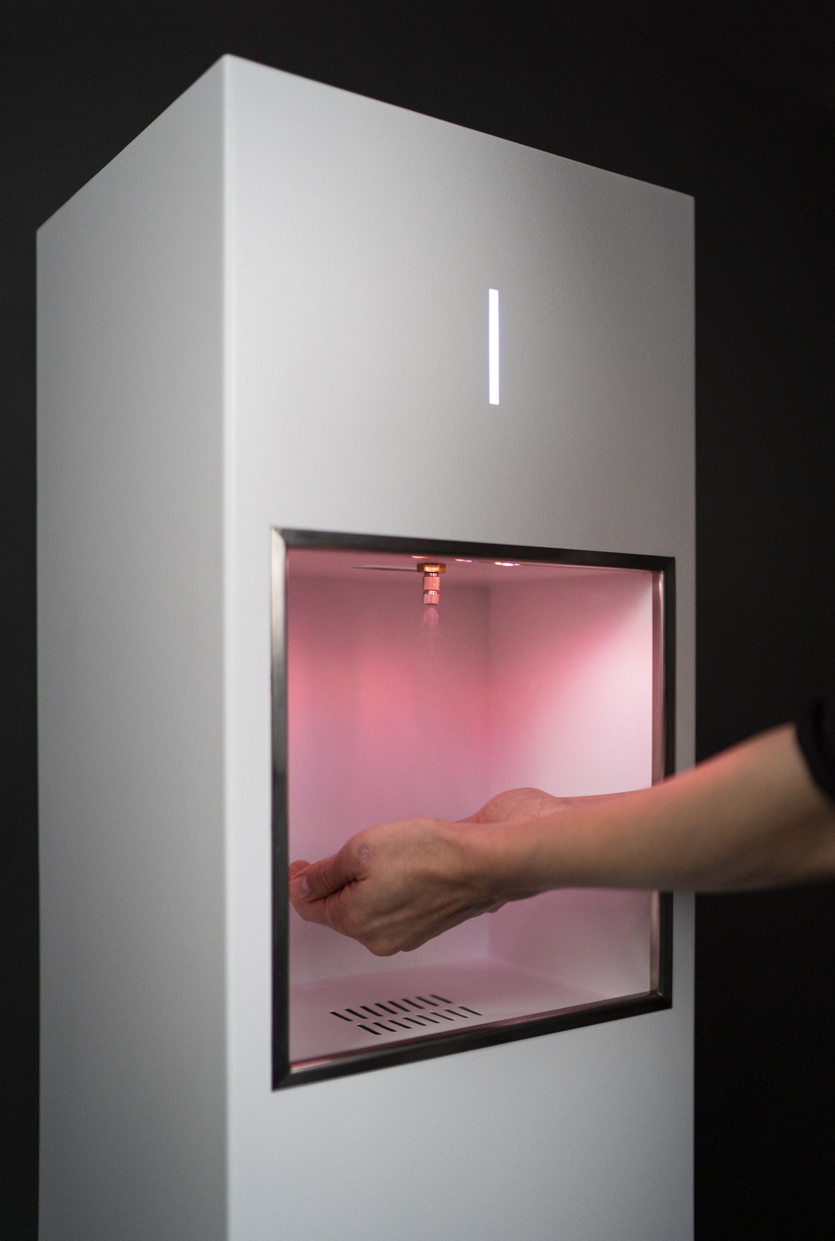 Das System verwendet einen Bewegungssensor zur kontrollierten Dosierung der optimalen Desinfektionsmittelmenge.
