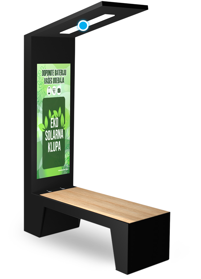 An der Außenseite der Bank kann ein PVC-Poster mit Motiven der Stadt, des Projekts oder anderen wichtigen Informationen über den Standort angebracht werden. Es ist nicht beleuchtet; es ist statisch und informativ.